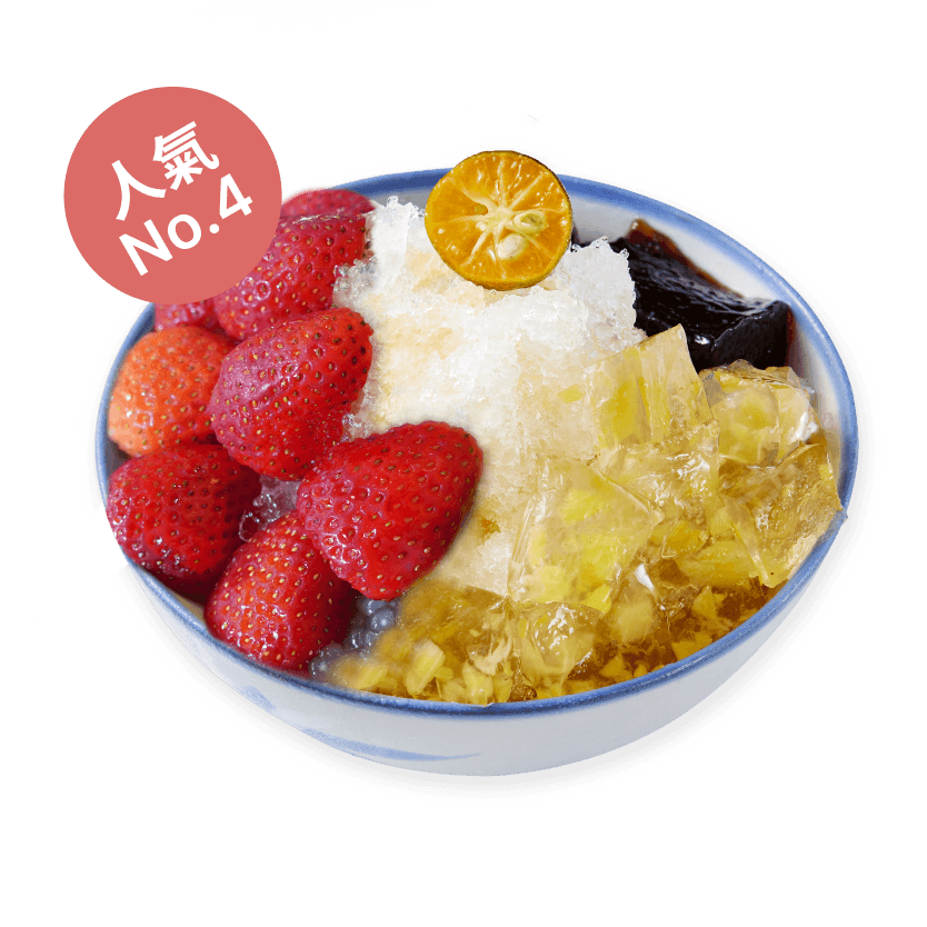 草莓 鳳梨蒟蒻 紅糖⻄谷米 仙草粉粿 金桔 豆花